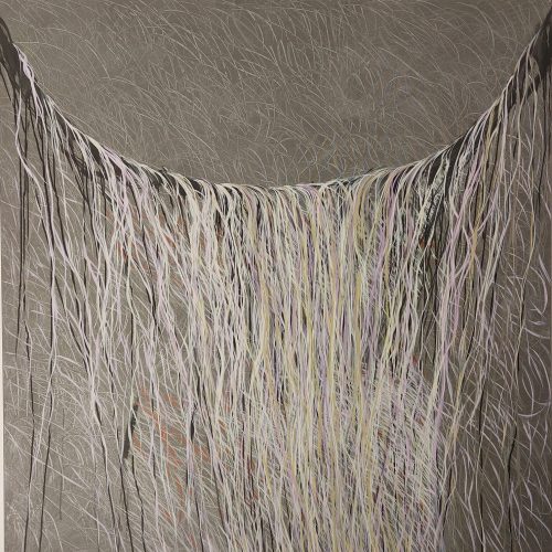 WORTREICH, Papiergarn aus Zeitungspapier und Hanji, Tusche, Pigmente